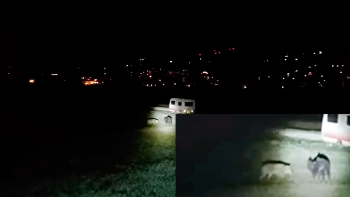 -“Muy bien. Amontonó a las ovejas alejándolas del lobo. Ahí está. ¡Maldita sea! No tengo gafas de visión nocturna, así que no creo que puedas verlo. Fioggia las amontonó. Literalmente, como si fuera un perro de maniobras. Las amontonó todas ahí. Ahí está. Ahí está. Míralo. Míralo. Aquí viene hacia mí. Este es el lobo que viene hacia mí en lugar de huir.