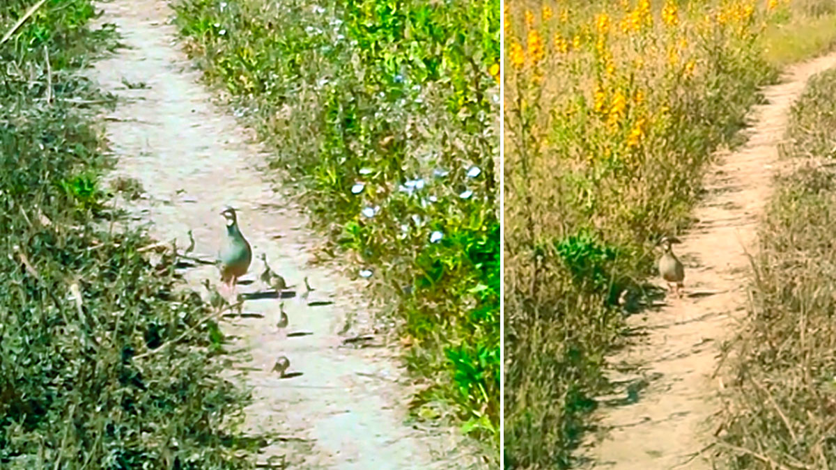 Las hembras, al ser sorprendidas con los pollos en un carril que cruza una siembra de cereal, en todo momento evitan llevar a los perdigones a lo sucio. Un gestor cinegético te explica el porqué de este comportamiento.
