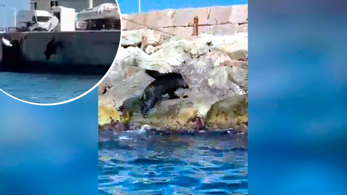 Hoy nos sorprende esta curiosa escena en la que un vecino de Denia se acerca al puerto en su embarcación para grabar lo que está sucediendo allí. El animal se acerca al límite del hormigón del puerto y da media vuelta, pero lo vuelve a pensar y ya nada le detiene: se tira al agua del mar y comienza a nadar.