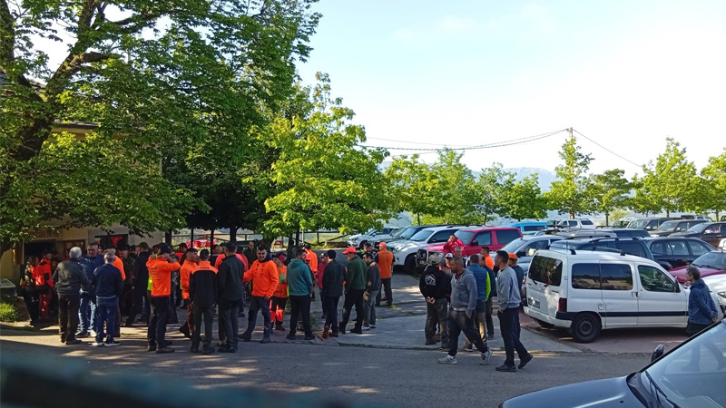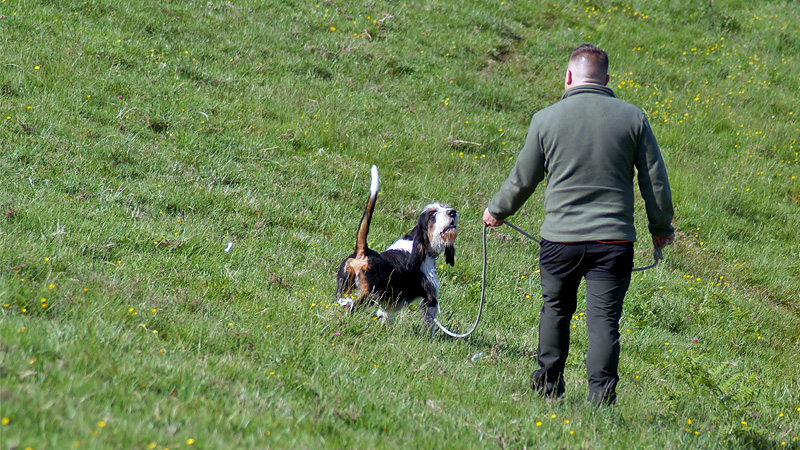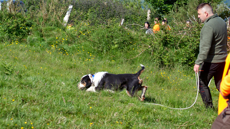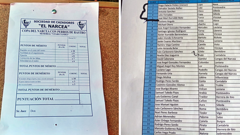 La mañana comienza con el reparto de dorsales y las explicaciones de la organización a los 160 participantes, que serán repartidos en cuatro campos para poder juzgar el trabajo de rastro de sus perros. Vamos a uno de ellos y en él preguntamos a un juez cómo se valora a un perro participante en este tipo de prueba