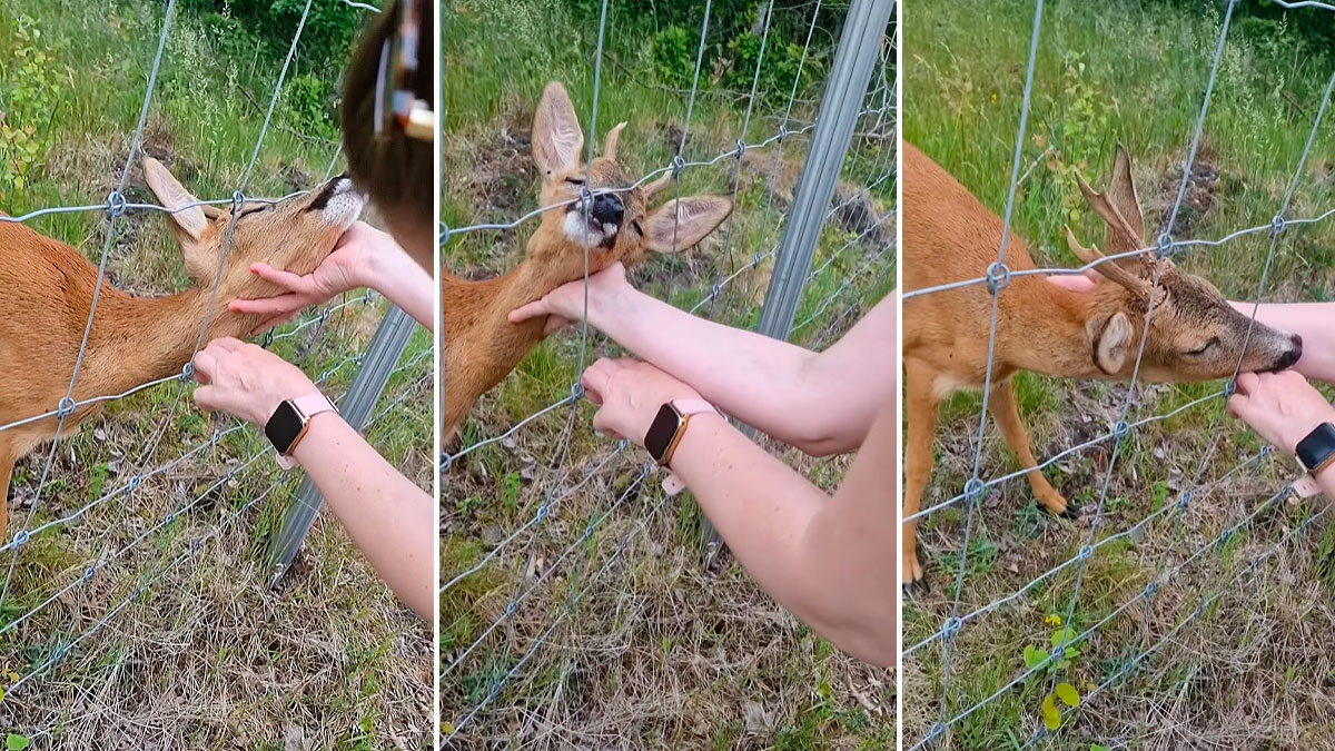 El pequeño y joven cérvido no reacciona cuando finalmente es liberado de la verja. El agotamiento y posiblemente la deshidratación por haber pasado demasiadas horas atrapado entre los alambres. Queda en una posición preocupante, con la cabeza junto al suelo, dando la impresión de que no cuenta con fuerzas ni para levantarla.