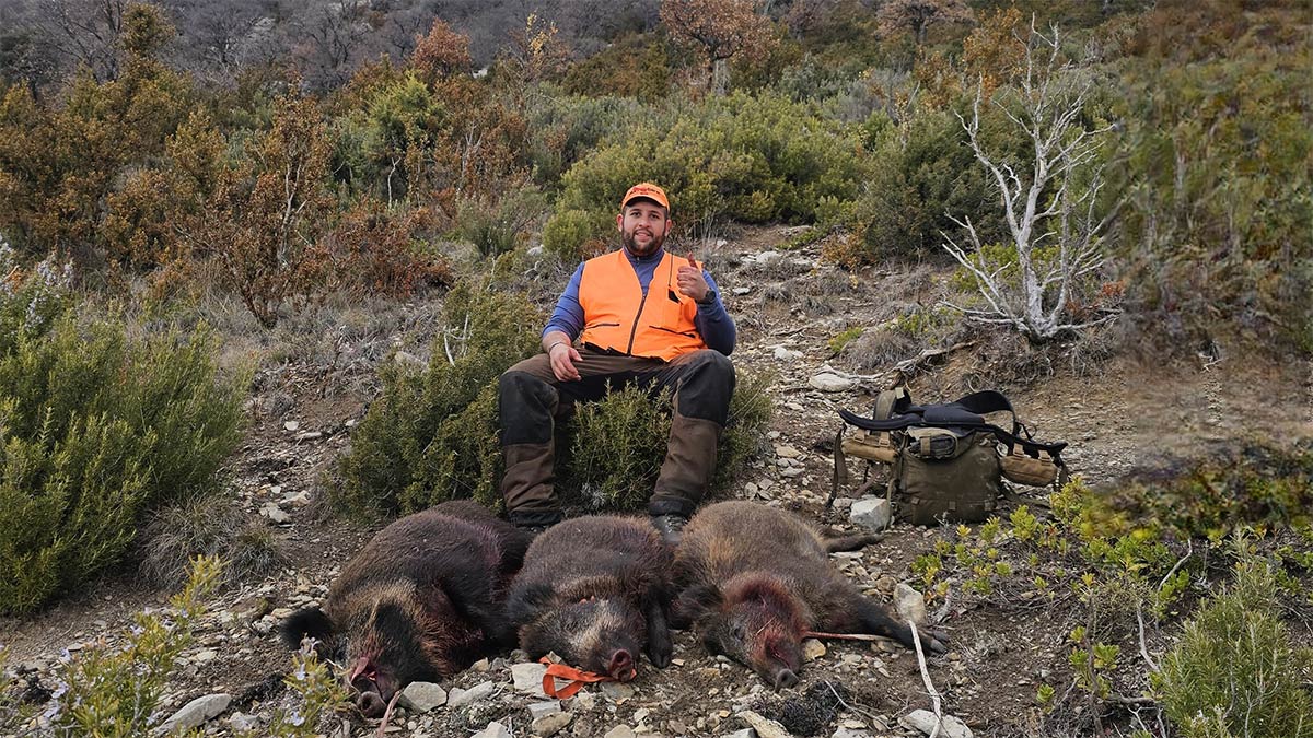 Adrián Fernández, colaborador habitual de Club de Caza, forma parte de la Colla de Arén. El grupo de cazadores ha abatido esta temporada 2.472 cochinos. Entre los jabalíes cazados se encuentran más de 300 machos con boca. Esta es la tercera temporada en la que la colla, capitaneada por Rosendo Castell, supera la cifra de 2.000 ejemplares cazados.
