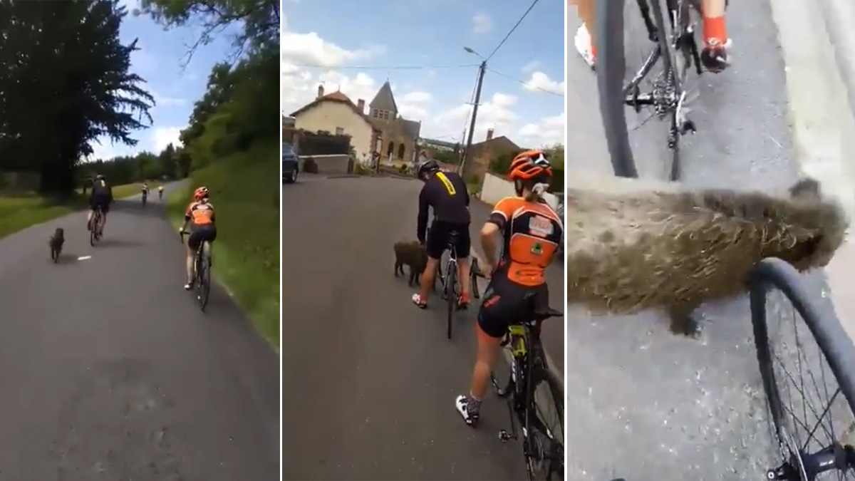 El deportista disfruta de una ruta ciclista junto a un grupo de amigos por las carreteras del distrito de Vouziers cuando recibe la visita del jabalí.