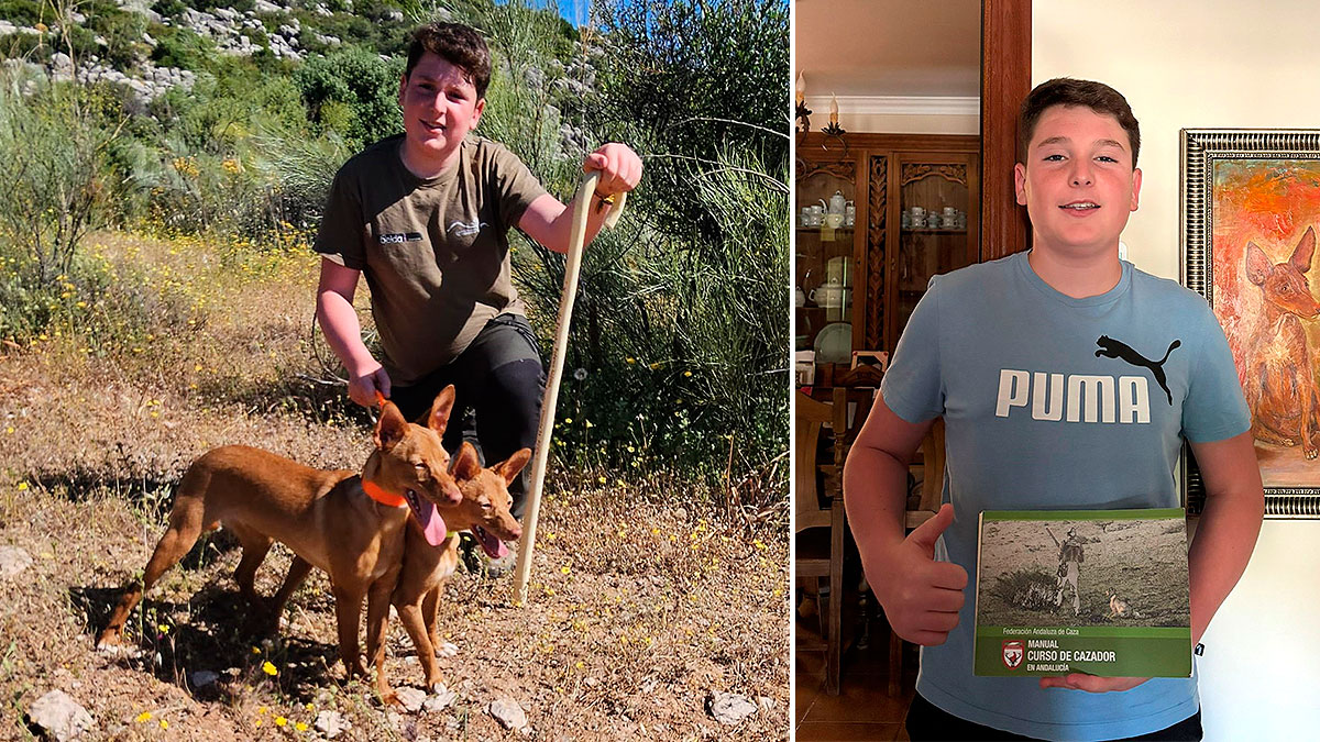 A primeros de abril, Álvaro Gil cumplió 14 años, la edad necesaria para obtener la licencia de caza. Ha tenido que esperar hasta finales de junio para asistir al curso celebrado en la delegación provincial de Málaga de la Federación Andaluza de Caza. Allí, durante 4 días y 8 horas diarias, ha recibido la preparación necesaria para superar el examen teórico-práctico necesario para obtener la licencia.