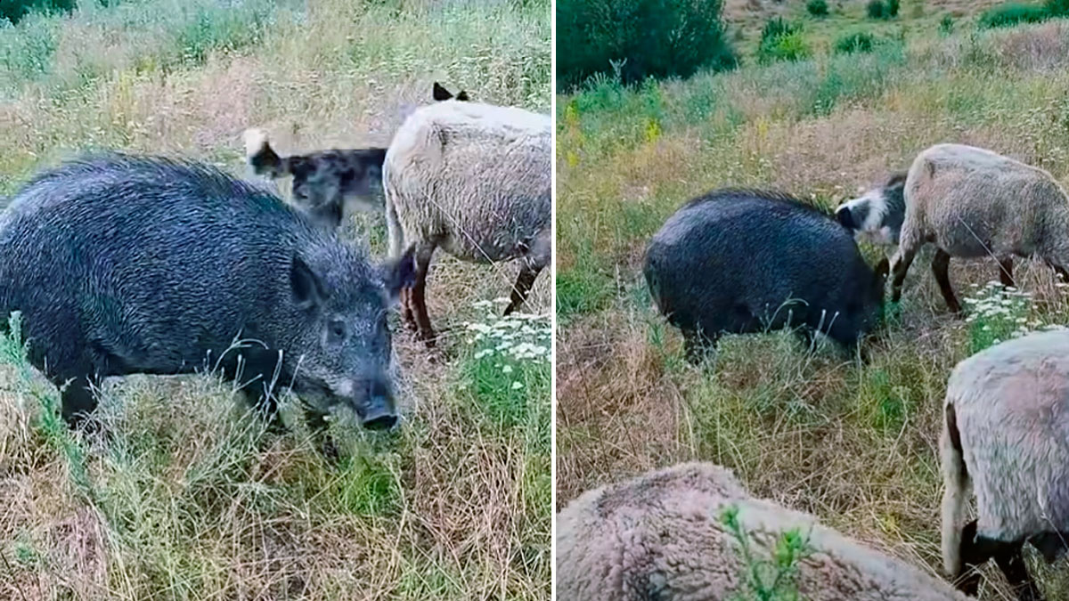 No es de extrañar que el reel de Facebook que ha publicado esta cuenta dedicada a la naturaleza y a la fauna silvestre rumana esté a punto de alcanzar el millón de visualizaciones. No es lo más común encontrarse con un ejemplar de esta especie alimentándose de lo mismo o en el mismo lugar donde pasta el rebaño. Al contrario, las interacciones entre jabalíes y ovejas suelen ser mucho más violentas, con cochinos que pretenden o que incluso consiguen dar caza a corderos o ejemplares adultos. Y existen pruebas gráficas que lo demuestran, como el viral vídeo que nos lleva a presenciar la persecución, cómo el jabalí alcanza a la oveja y cómo la ataca para alimentarse de ella. Sucedió en Guipúzcoa, en los pastos de la Quesería Aranburu.