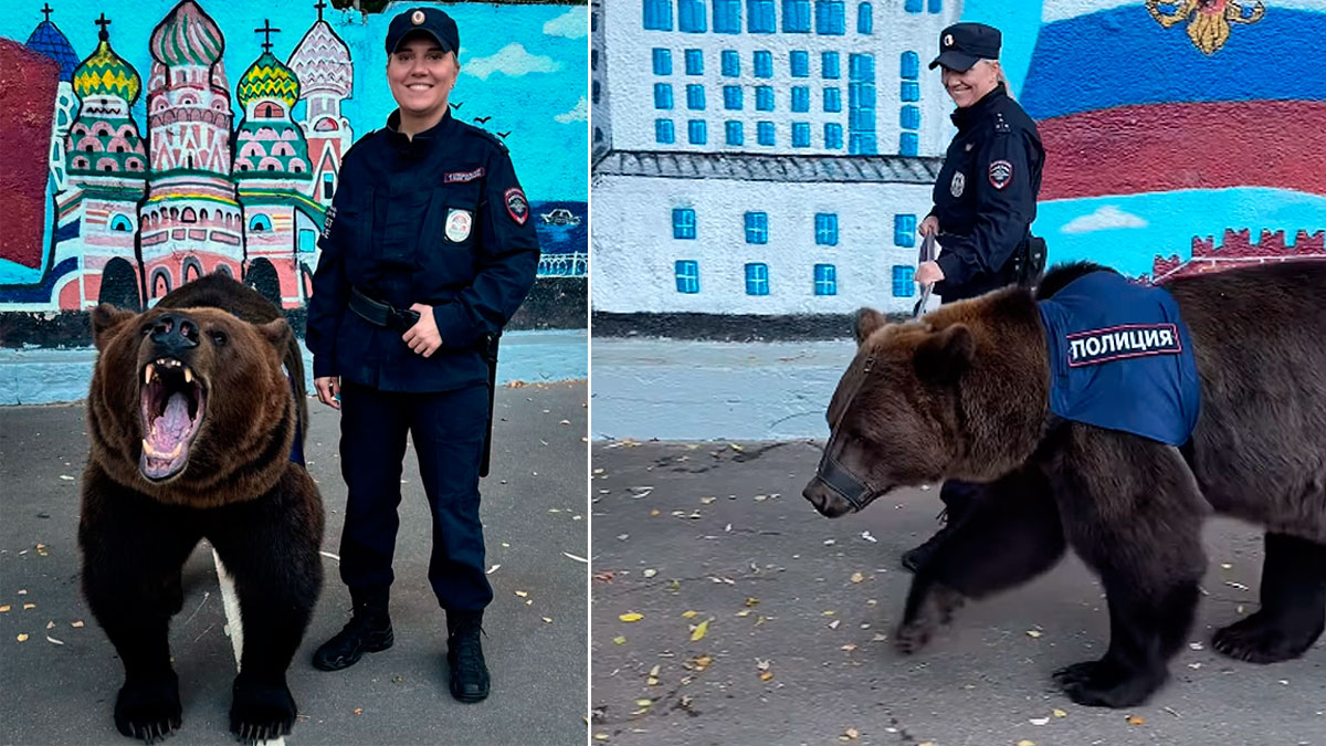 Atado con una cuerda, el oso camina junto a la mujer ataviada con el uniforme de la Policía Turística de Rusia. Ante lo sorprendente de los hechos, hemos buscado alguna referencia en los medios de comunicación del país y únicamente hemos encontrado una pequeña publicación de hoy 16 de julio basada en el mismo vídeo con el siguiente texto: «El Ministerio del Interior ruso ha comenzado a utilizar osos en lugar de la policía montada tradicional. Según representantes de la agencia, los osos no solo están perfectamente adaptados al duro clima, sino que también realizan una excelente labor de mantenimiento del orden público».