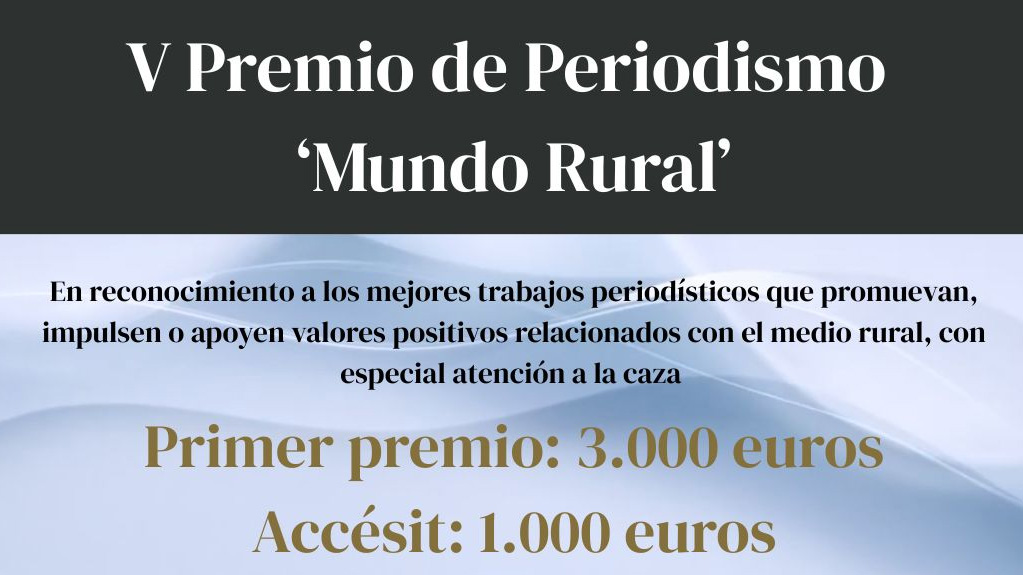 Fundación Artemisan ha convocado la quinta edición del Premio de Periodismo ‘Mundo Rural’, que busca reconocer los mejores trabajos periodísticos que promuevan, impulsen o apoyen los valores positivos relacionados con el mundo rural, así como con las actividades productivas que hacen posible su sostenibilidad, con especial atención a la caza y sus aportaciones al medio rural.
