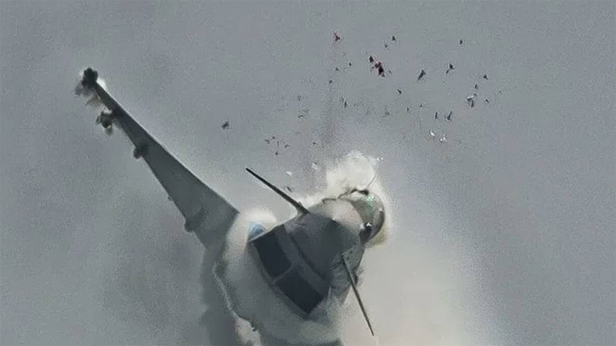 Imagen que muestra los daños sufridos en el avión de combate. Foto: Instagram/@air_spotter7200.
