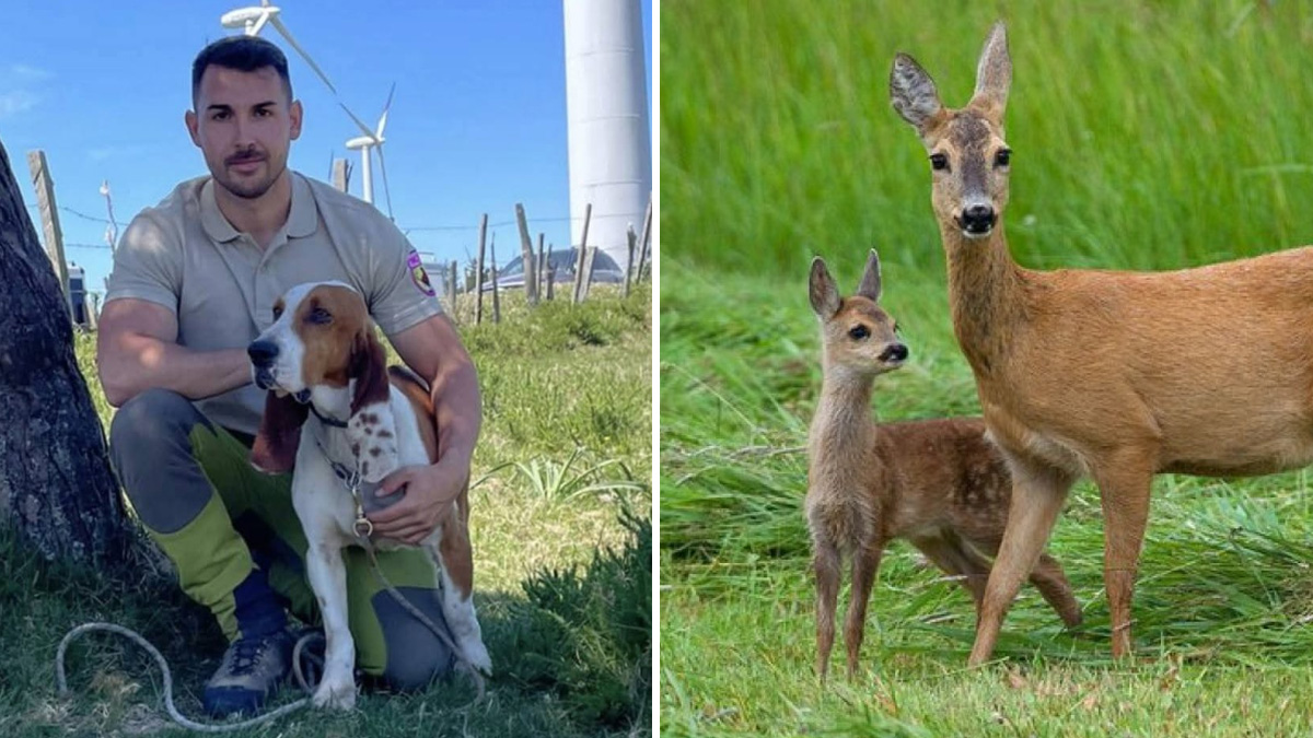 En una jornada de perreo, la perra encuentra en su camino a una corza y su corcino. Los ungulados no se percatan de la presencia de Elsa hasta que no está a escasa distancia de ellos. La reacción del can al ver a los corzos es simplemente observarlos. Cuando los animales huyen a la carrera, el grifón Astur-Cántabro regresa junto a su dueño para continuar buscando el rastro de los cochinos. Lograr un perro con un grado de adiestramiento como este requiere de muchas horas de trabajo. El entrenamiento de limpieza recibido por la hembra queda patente en esta grabación.