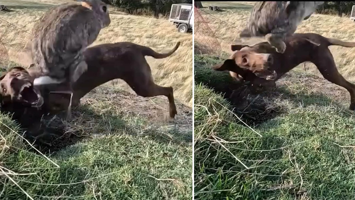 La imagen comienza con el perro intentando embocar al conejo. Lo ha visto y se lanza rápidamente contra él en cuanto asoma por la salida de la madriguera. Pero algo impresionante sucede. El lagomorfo esquiva el ataque realizando un prodigioso salto que le lleva a caer lo suficientemente lejos del can como para intentar dejarlo atrás a partir de su velocidad. No en vano, un conejo es capaz de alcanzar velocidades superiores a los 50 km/h. Pero en esta ocasión cae en la trampa escasamente visible de la red y esto le condena a ser atrapado de manera inmediata.